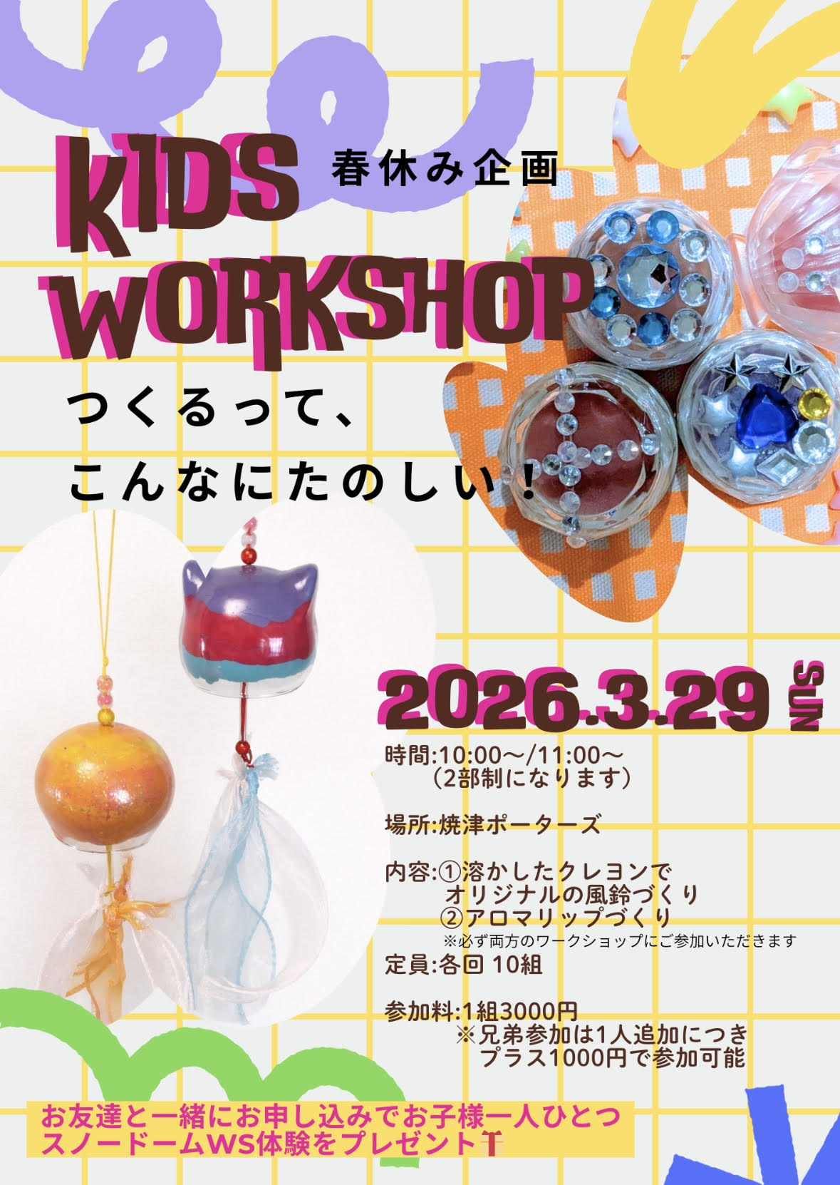 3/29 キッズワークショップ(風鈴🎐・アロマリップ💄)